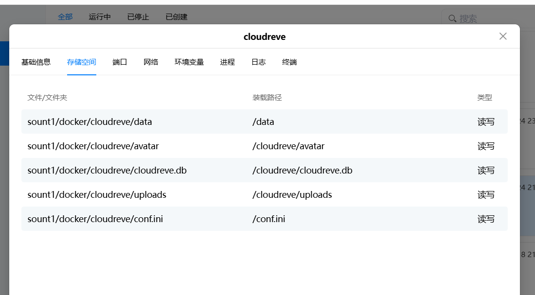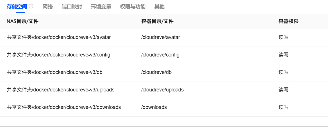 - /volume1/docker/docker/cloudreve/cloudreve.db:/cloudreve/cloudreve.db ##映射的是一个文件不是路径