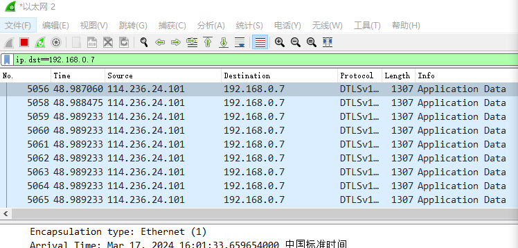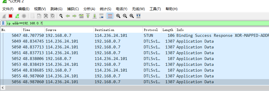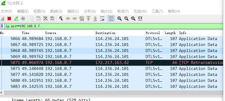 可以看到源IP地址为指定IP的包