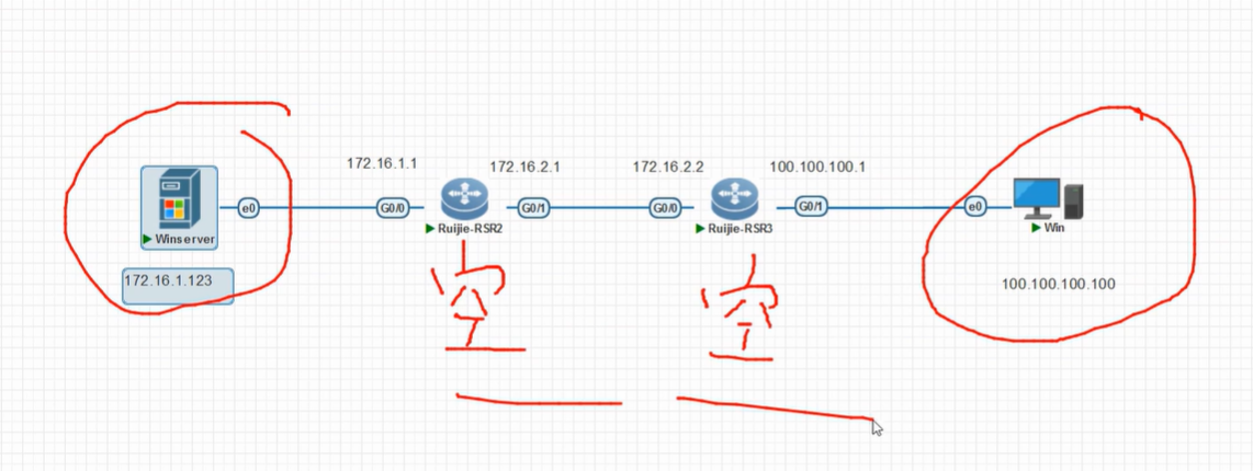 1.windows server的地址为172.16.1.123对端设备为100.100.100.100