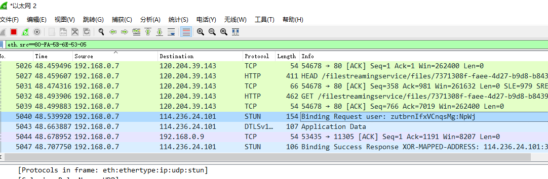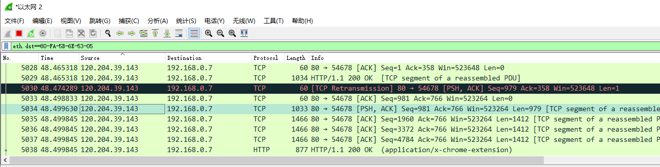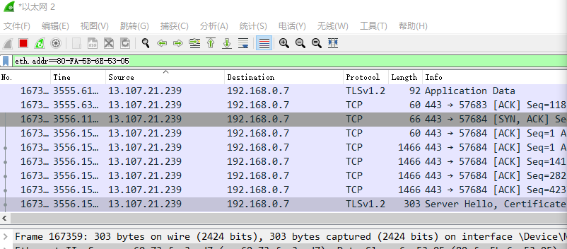 5.查看目的mac为80-FA-5B-6E-53-05的包