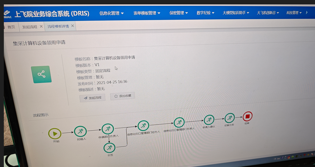 在上飞院业务综合平台-信息化运维-集采计算机设备领用申请中发起