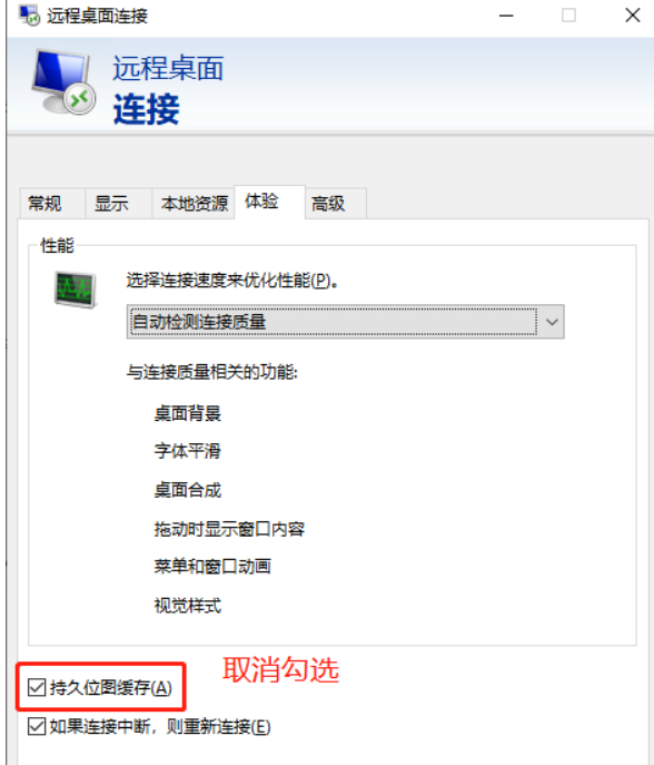 如不想产生位图缓存,可以取消勾选持久位图缓存
